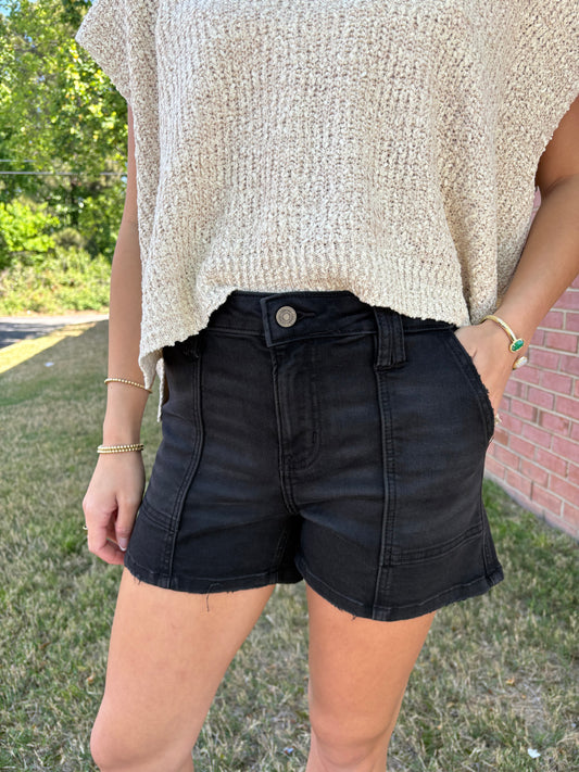 Black Denim Utility Shorts