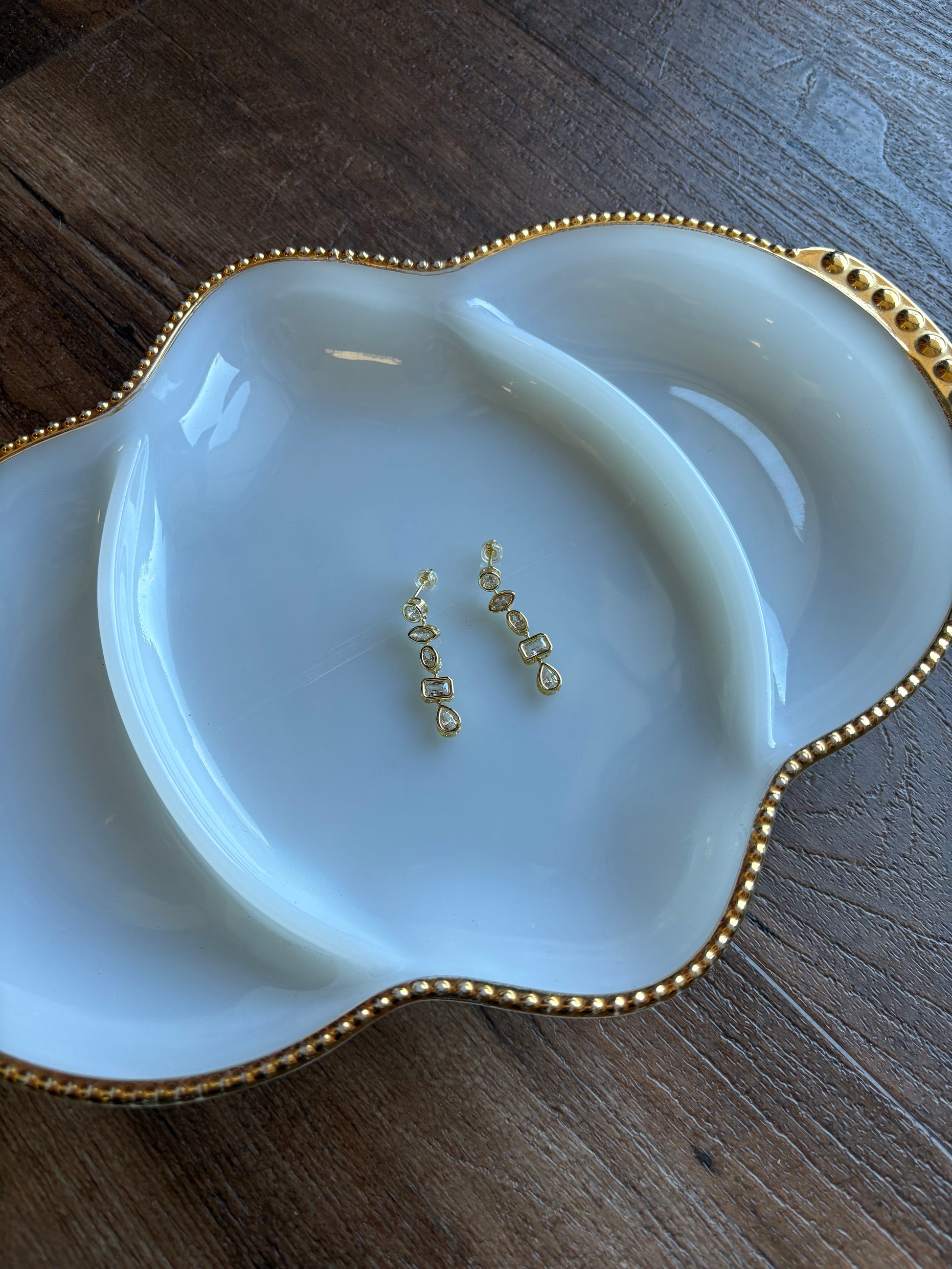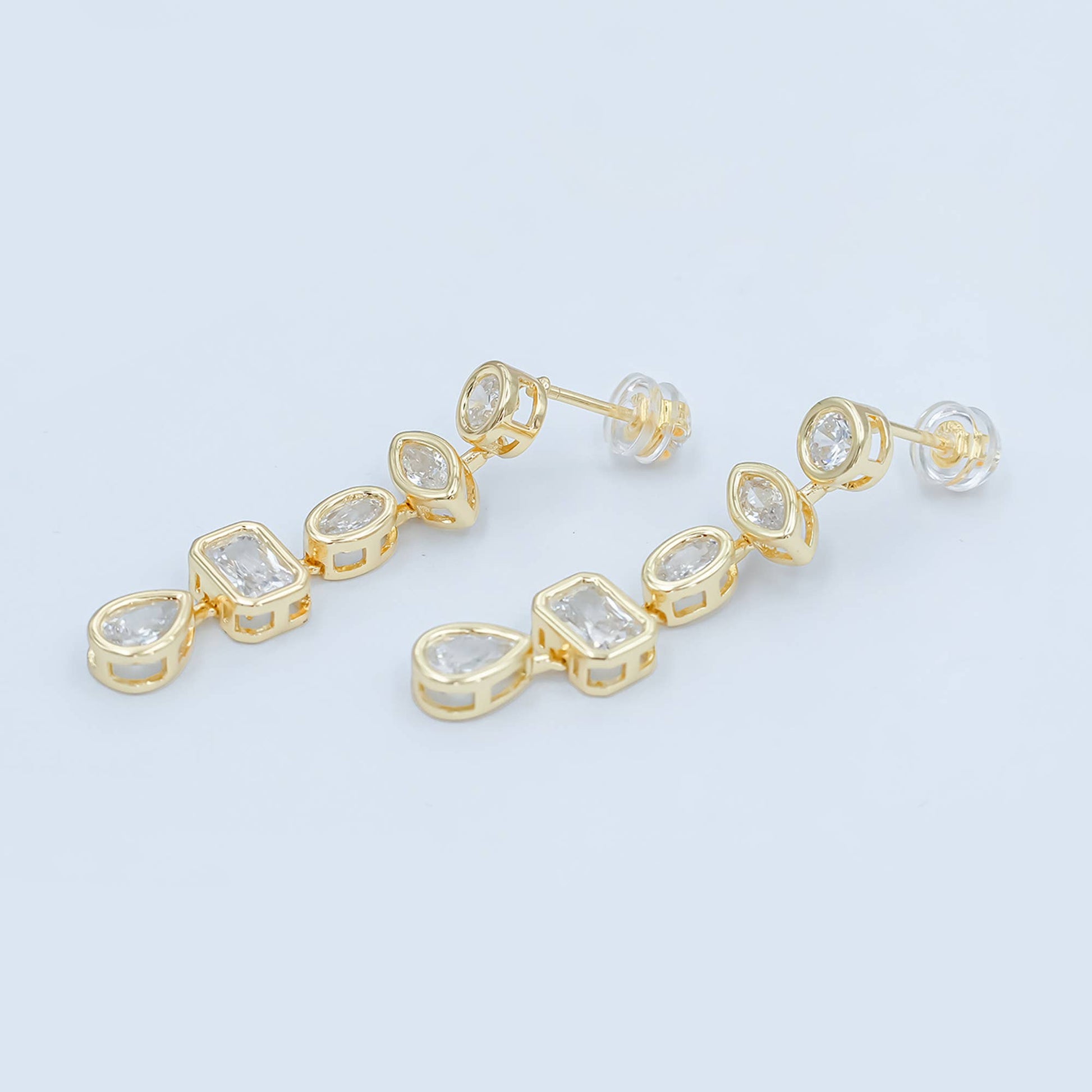 24K Gold Filled Geometric CZ Bezel Drop Stud Earrings
