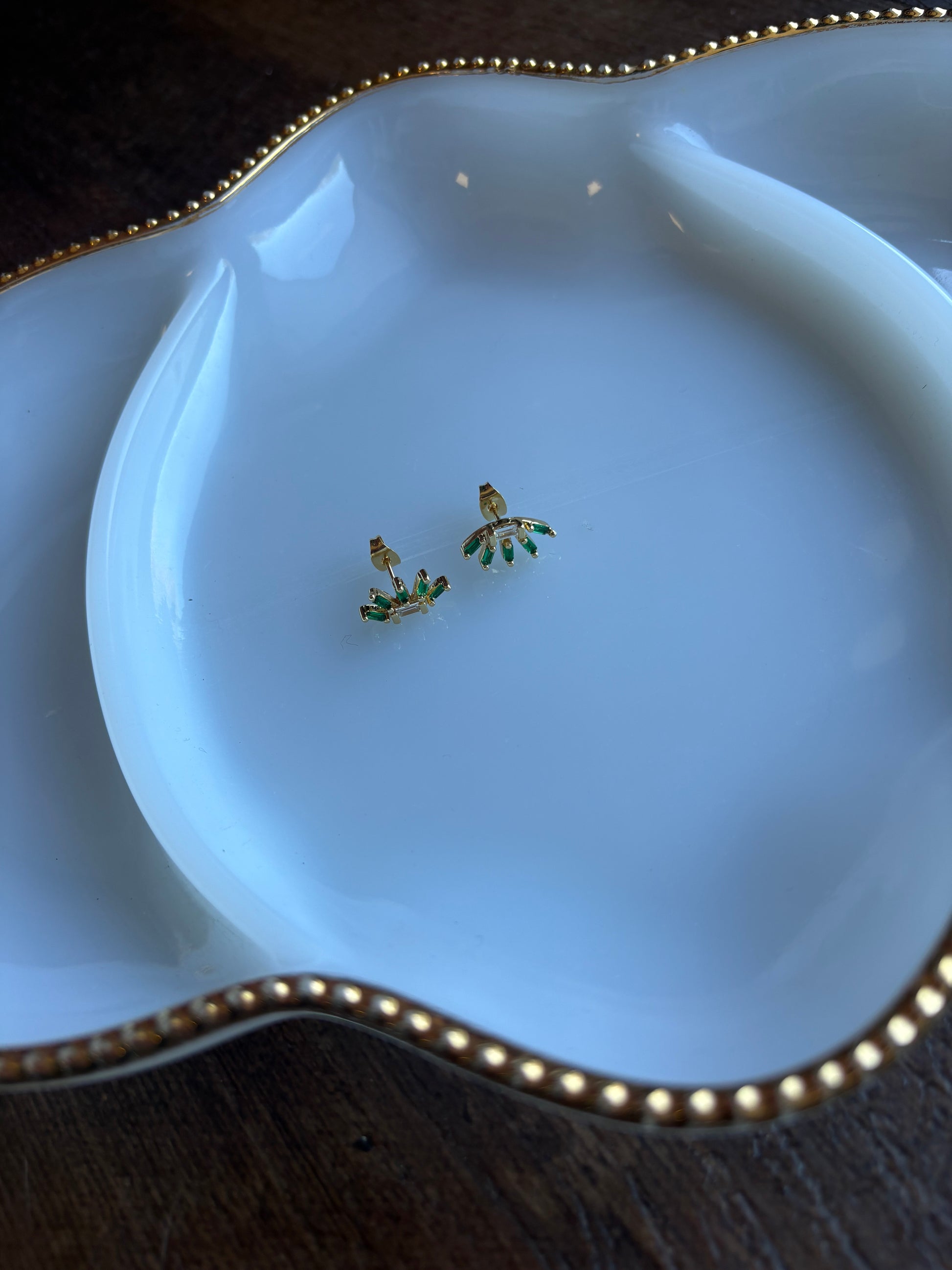 Green and clear baguette style stud earrings.