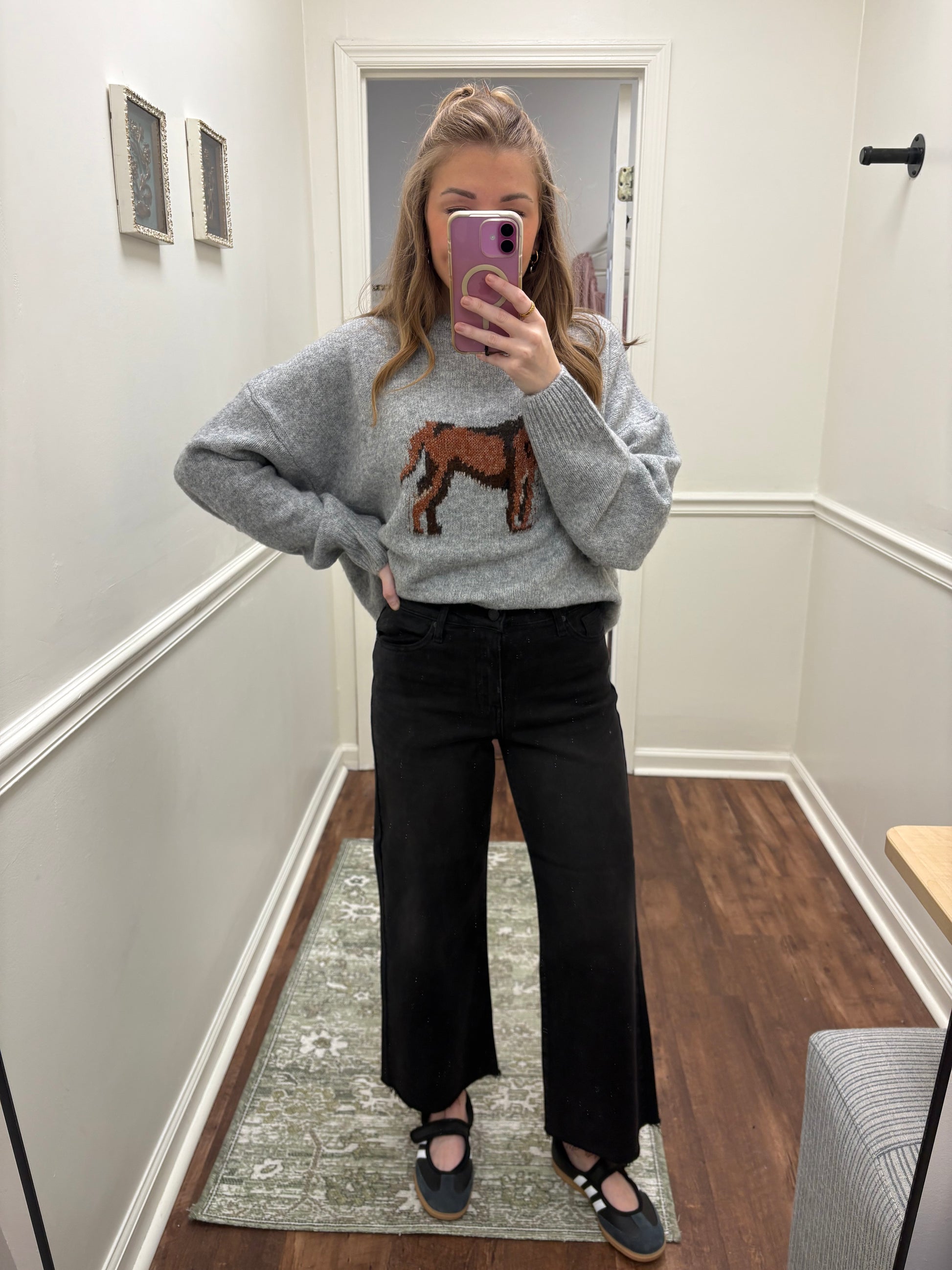 Black slim wide leg denim by JBD! Featuring our versatile, soft fabric this pair holds your waist with the perfect amount of stretch - right at the belly button. Available in a washed black.