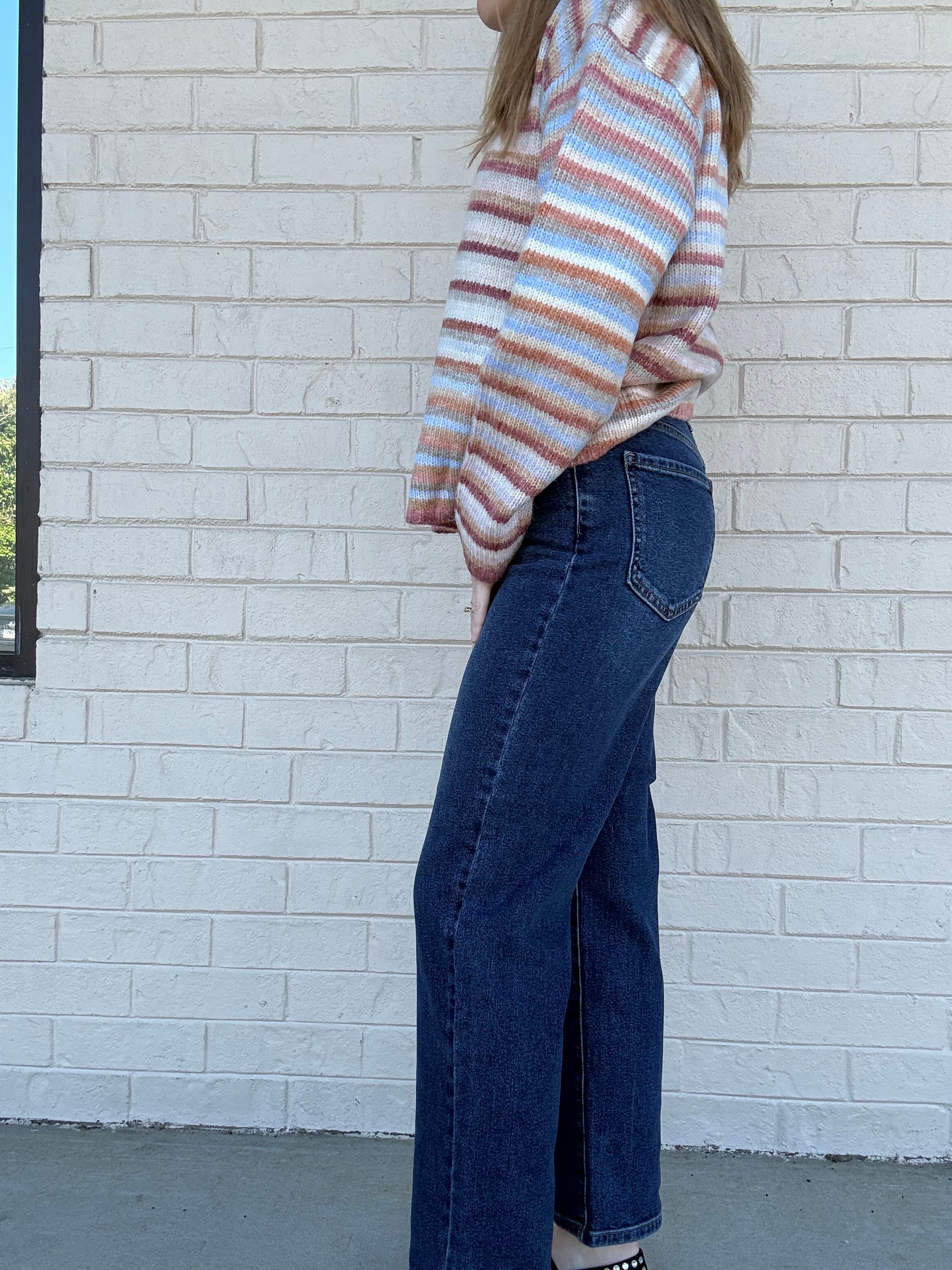 Featuring a classic high-rise waist and straight-leg silhouette, these jeans are crafted to flatter while the dark denim wash adds a vintage touch that's effortlessly versatile. See size chart in photos!