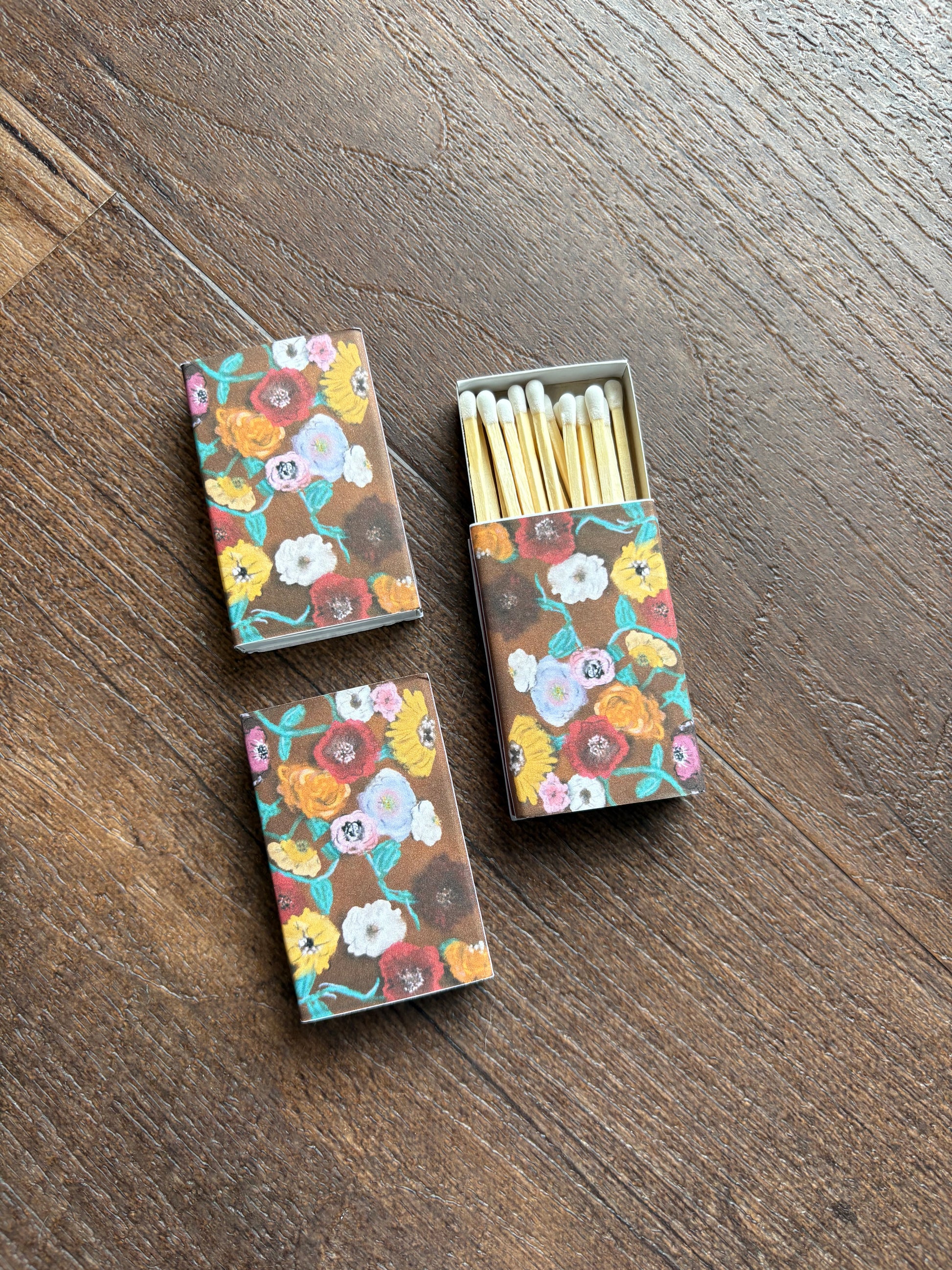 Light up any moment with these handmade matchbooks, designed to spark conversation as much as candles. Perfect for gifting, event favors, or simply elevating your everyday coffee table aesthetic. This matchbook has a hand drawn graphic of the surprise song piano covered in flowers. The box is sized to 2.25"L x 1.38"W x .38"H. Each box is made of cardboard and contains 18 white-tipped wooden matches with a match starter on one side.