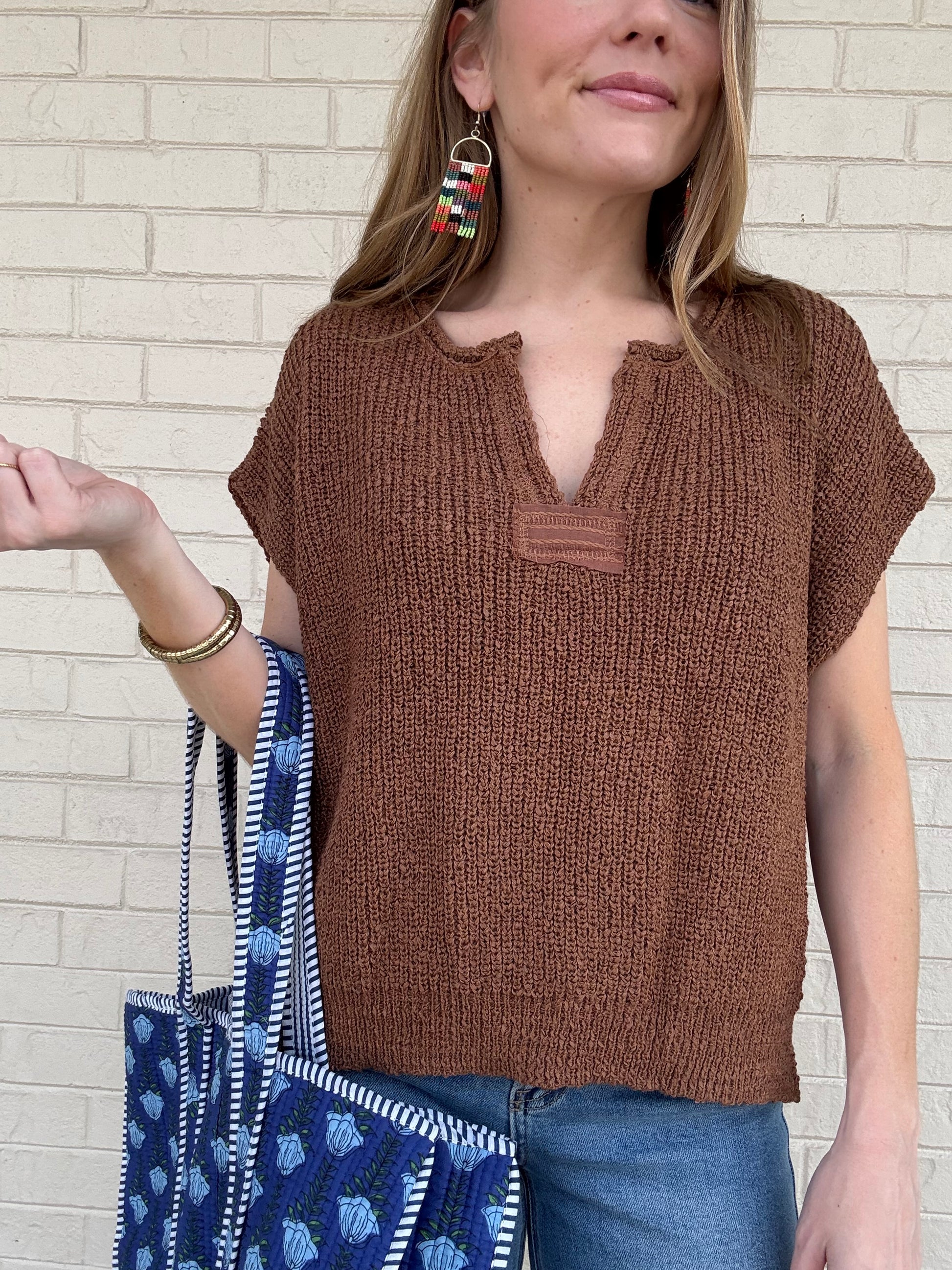 A stunning camel sleeveless sweater top! We love this easy to wear pullover top! It is so flattering, comfy, soft, and easy to style!