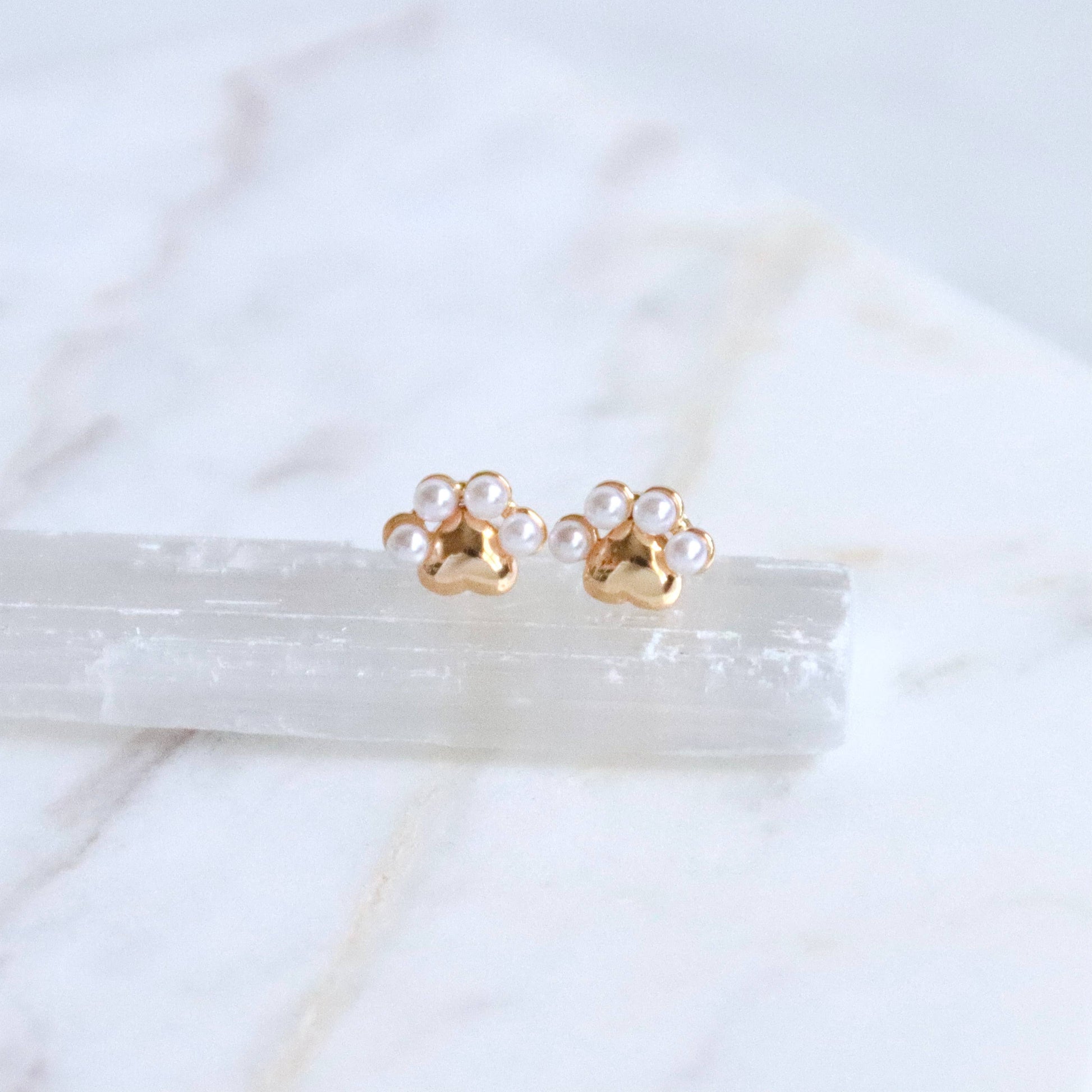 18K Pearl Paw Stud Earrings
