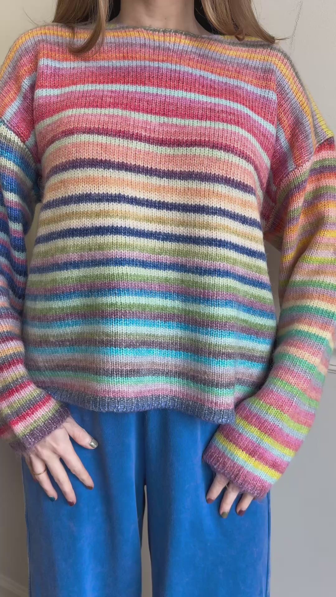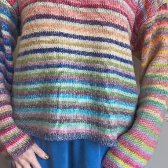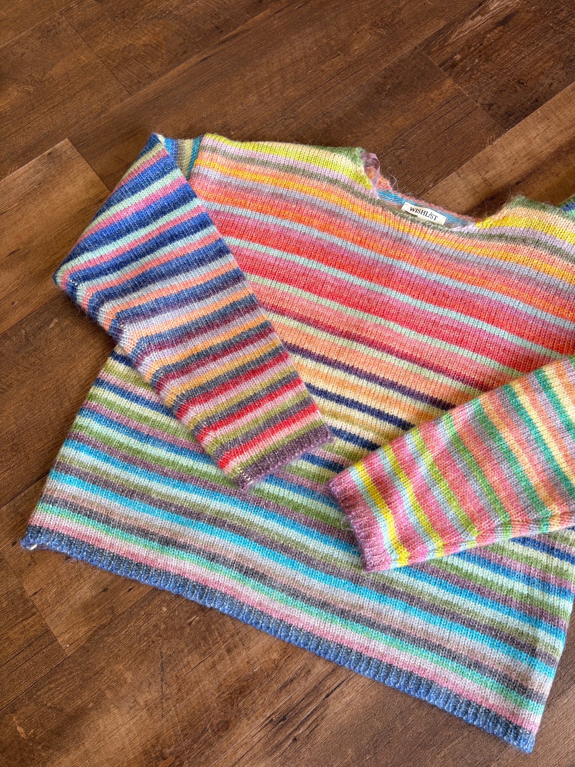 Rainbow striped knit sweater! Please note yarn color may vary.
