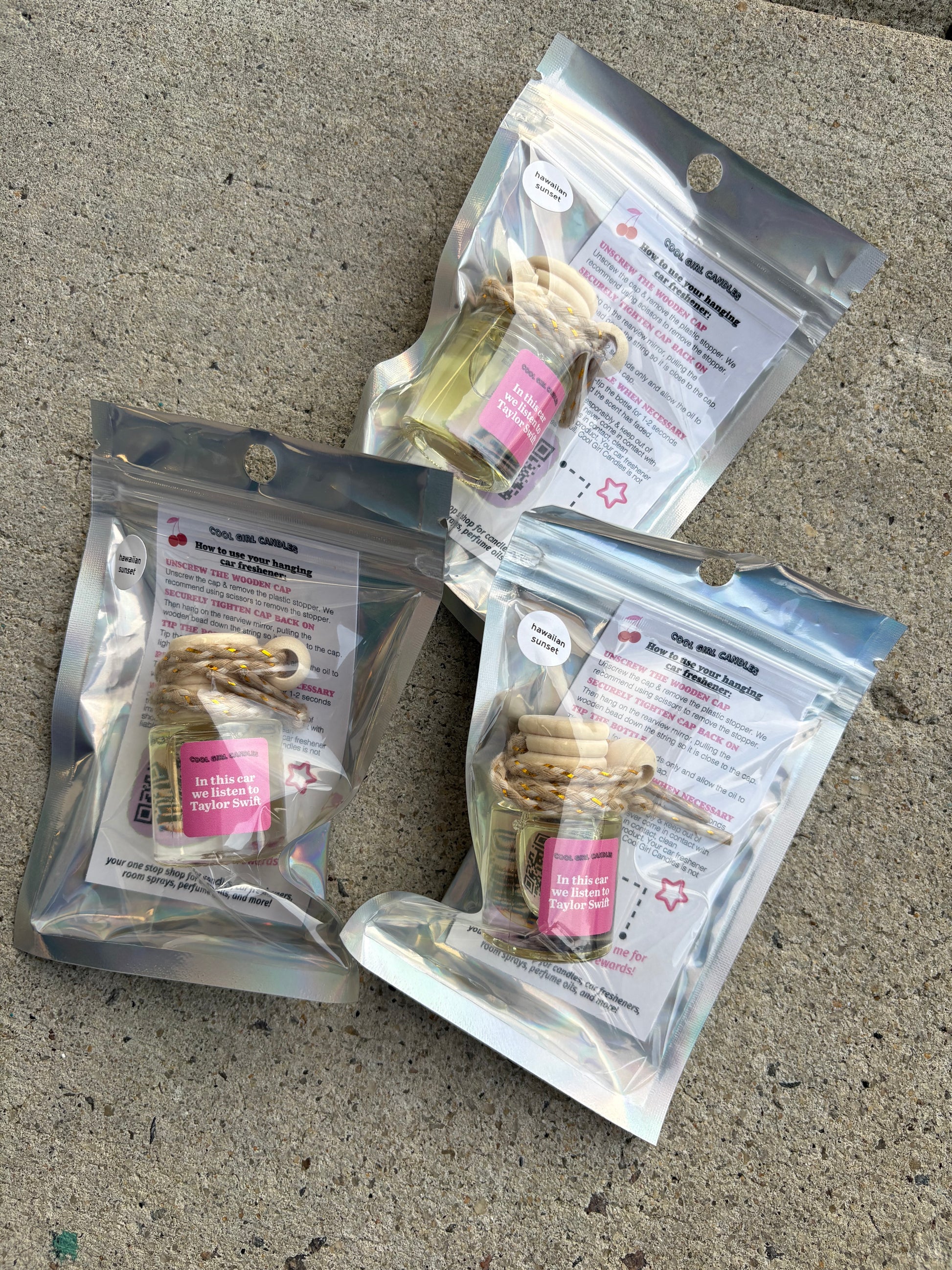 CAR FRESHENER! Hawaiin Sunset scent inspired by everyone's favorite volcano scent! A cute and fun car accessory that hangs from rear view window and will have your car smelling good and looking cute, too!